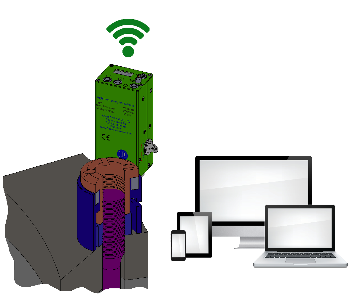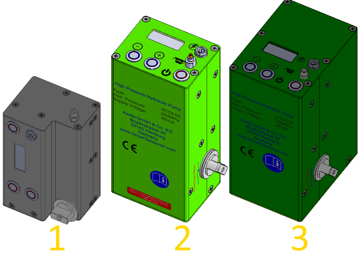 Small Pump - 1 Our smallest pump recommended for threads up tp M36 / 1 1/2". Weight: 1.5 kg. All pumps include a sophisticated torque-motor in combination with a pressure sensor. The maximum pressure (correspinding to the maximum bolt force) can be adjusted. In operation, the pump display shows the current pressure. The pump functions can be controlled using the integrated panel or an external, weireless control device with the smartTensioner Software. Medium Pump - 2 Our medium pump recommended for threads up tp M72 / 3". Weight: 2.5 kg. All pumps include a sophisticated torque-motor in combination with a pressure sensor. The maximum pressure (correspinding to the maximum bolt force) can be adjusted. In operation, the pump display shows the current pressure. The pump functions can be controlled using the integrated panel or an external, weireless control device with the smartTensioner Software. Large Pump -3 Our biggest pump recommended for threads bigger than M72 / 3". Weight: 4.0 kg. All pumps include a sophisticated torque-motor in combination with a pressure sensor. The maximum pressure (correspinding to the maximum bolt force) can be adjusted. In operation, the pump display shows the current pressure. The pump functions can be controlled using the integrated panel or an external, weireless control device with the smartTensioner Software. |